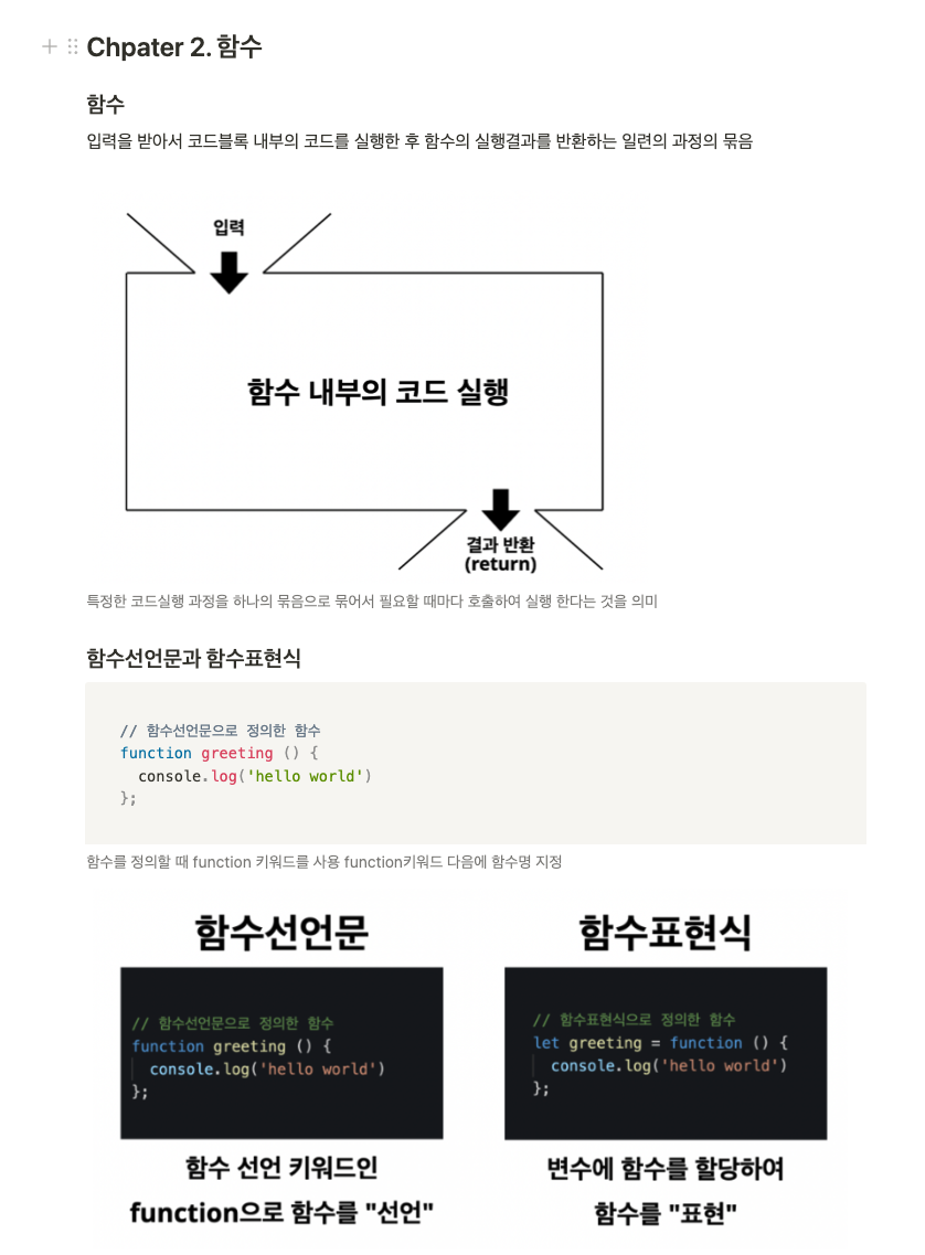 기초라고 할 수 있는 반복문과 조건문에 대해 배웠다. "반복문과 조건문만 잘 사용해도 기본은 한다" 라고 들었다. 의사코드 작성 연습에도 도움이 될 거 같다. 함수다... 자바스크립트에서 매우 중요하다고 한다. 개념을 잘 알도록 하자!